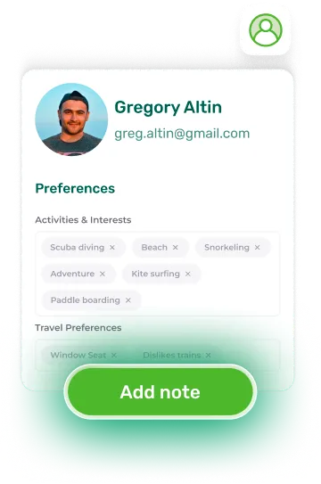 With Contact Manager, store traveller information, preferences, and trip details in a single hub. Keep records accurate, link them directly to itineraries, and personalise every proposal with confidence.